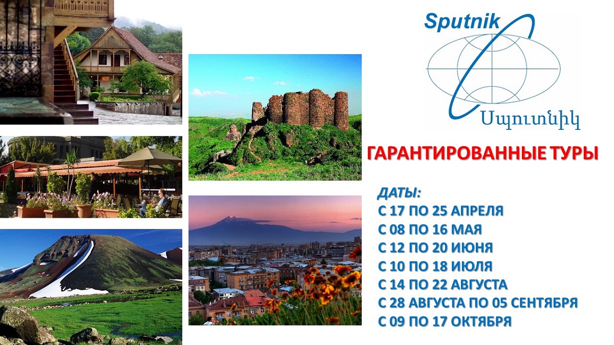 “Спутник” - один из самых опытных тур операторов Армении. В течение своей 50-летней практики “Спутник” обслужил более одного миллиона гостей Армении.