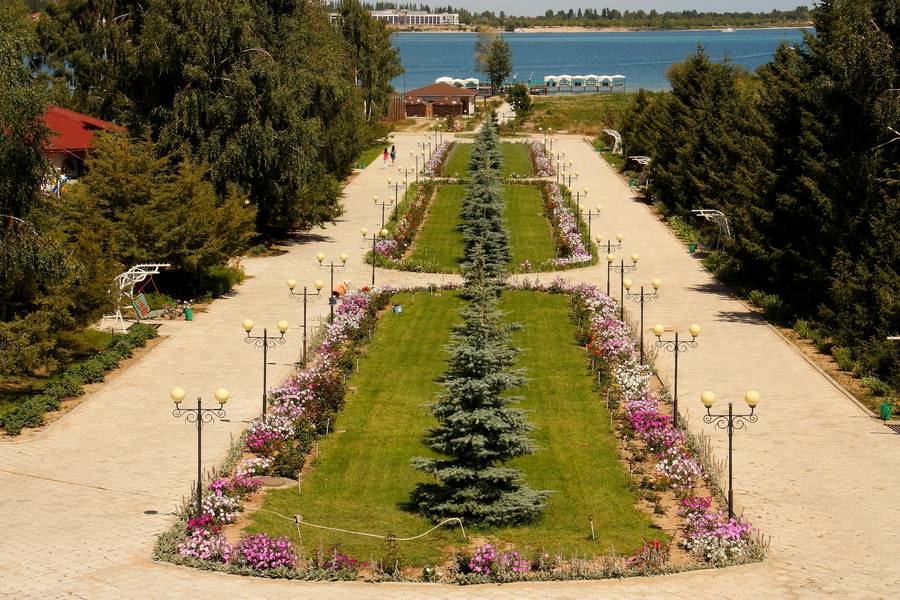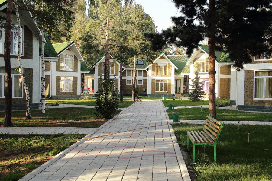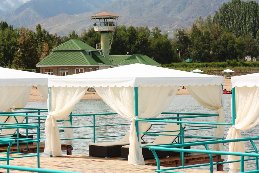 Территория Отеля утопает в зелени, упоительный воздух которого благотворно влияет на людей всех возрастов. На территории имеются взрослый и детский бассейны, спортивные площадки, теннисный корт, кафе и рестораны с живой музыкой, предлагающие своим гостям блюда кыргызской, восточной и европейской кухни. Максимальное расстояние до пляжа 250 метров. Пляж оборудован пирсом с шатрами, зонтиками и шезлонгами, а также имеются все виды пляжных развлечений: катамараны, скутера, бананы, водные таблетки, парашют и многое другое!