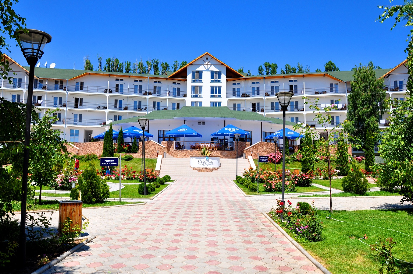 Отдых круглый год: Потрясающий вид на озеро из окна каждого номера, изобилие цветов на территории комплекса подчёркивают всю красоту отдыха на Иссык-Куле; отдых на озере - это заряд энергии и бодрости на долгие месяцы. Разнообразный выбор досуга позволяет насладиться природой и убежать от городской суеты в любое время года. Зимой - это чистый, морозный хрустальный воздух, пушистый снег, комфортное проживание, разнообразный досуг и неповторимая зимняя атмосфера. Весна воистину прекрасна; невзирая на свои причуды, это время года превосходно подходит для отдыха и наслаждения природой. Лето дарит своё тепло, плеск волн и горячий песок. Осень удивляет своими насыщенными, яркими красками.